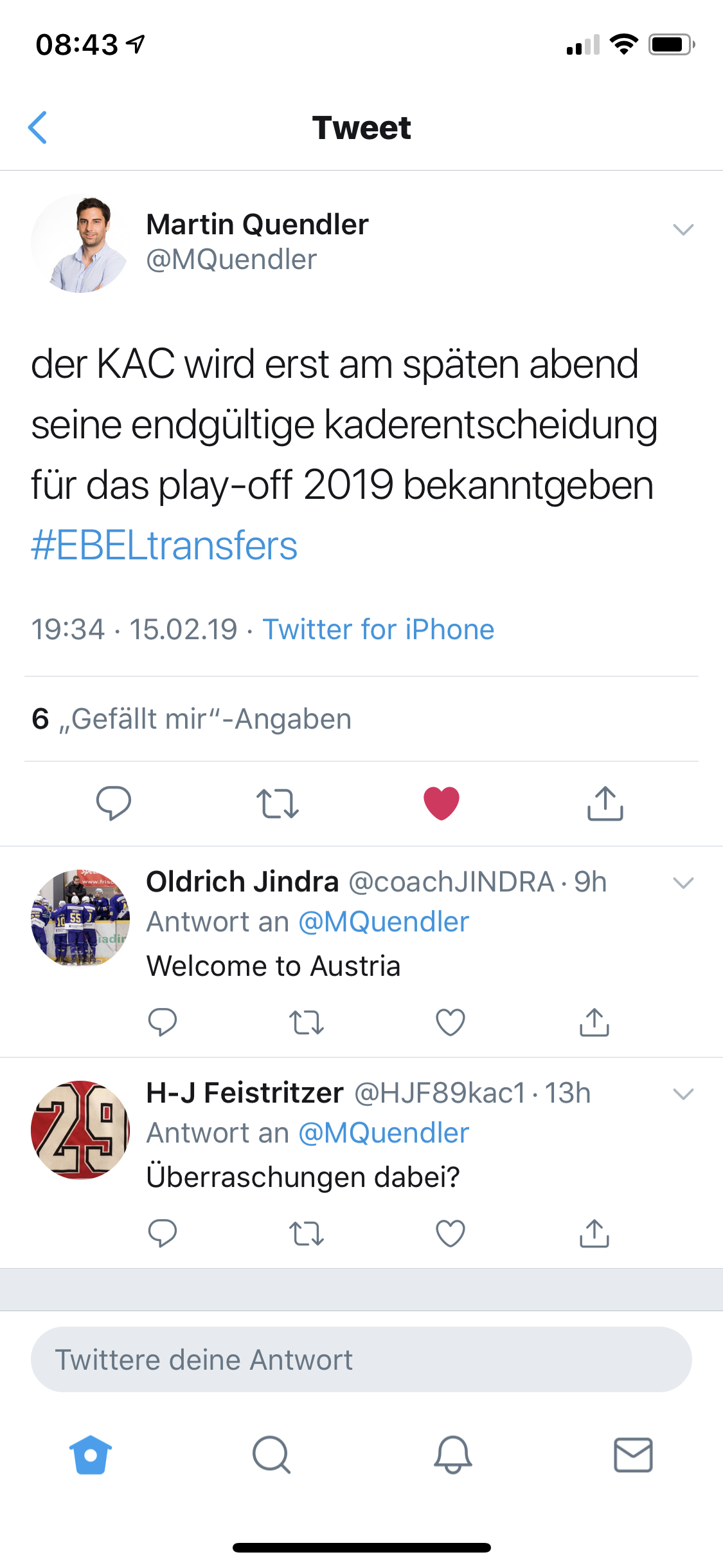 Wenn Quendler es explizit so twittert, wird wohl was kommen! Vielleicht meinte er auch, dass es heute nach dem Spiel intern der Mannschaft kommuniziert wurde, und erst später öffentlich?! Irgendwas wird wohl dran sein.