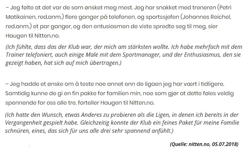 Haugen kommt da schon noch mit einer anderen Vita. Noch dazu mit gleichbleibender Leistung über viele Jahre mit keinerlei negativen Ausreißern. Verletzungsfrei dürfte er noch dazu auch gewesen sein.