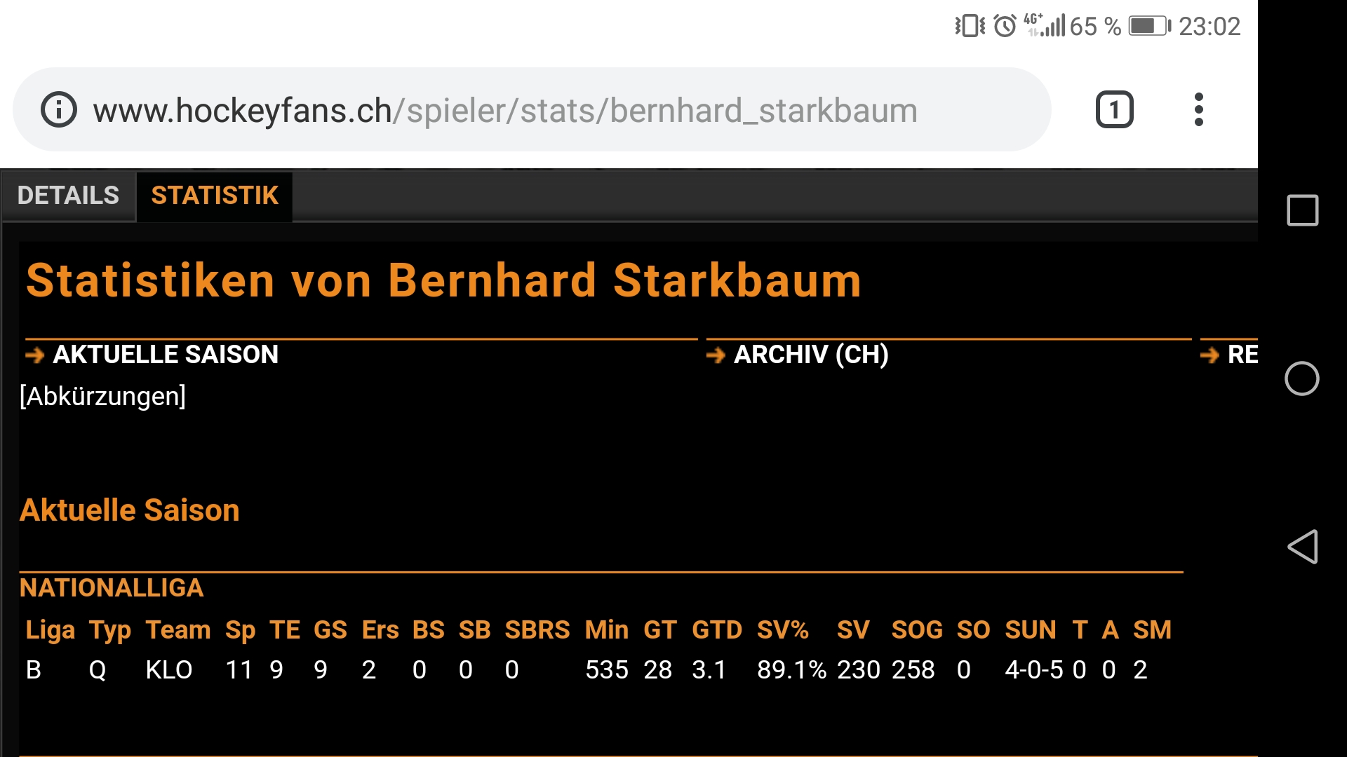 Starkbaum hat es in der zweiten Schweizer Liga gerade mal auf ein percentage von 89% in 9 Spielen gebracht. Das sind doch recht magere Zahlen, wie ich finde.