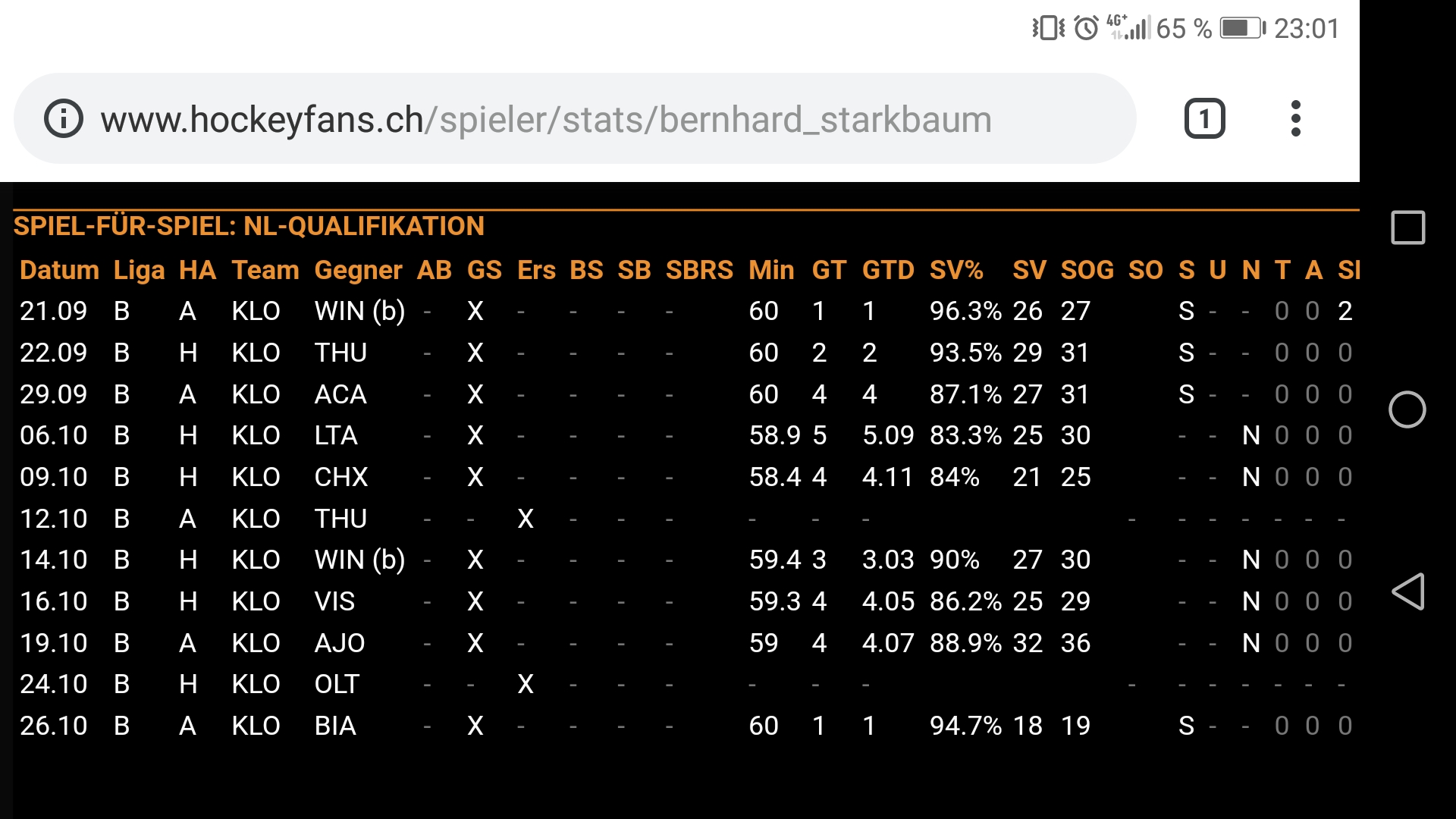 Starkbaum hat es in der zweiten Schweizer Liga gerade mal auf ein percentage von 89% in 9 Spielen gebracht. Das sind doch recht magere Zahlen, wie ich finde.