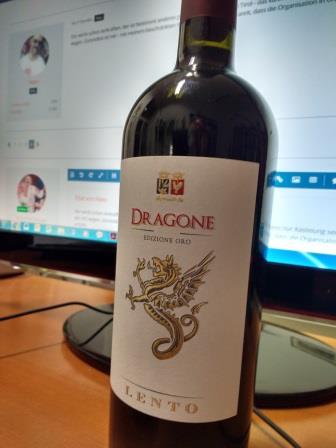 Diesem Anlass entsprechend habe ich schon - siehe Beweisfotos unten - den passenden Wein aus dem Keller geholt, eine Flasche "Dragone", rosso, Edizione Oro, Calabria, womit auch die Frage geklärt wäre, welchen Rötel ein Kalabrier in Innschbrugg zu trinken pflegt.