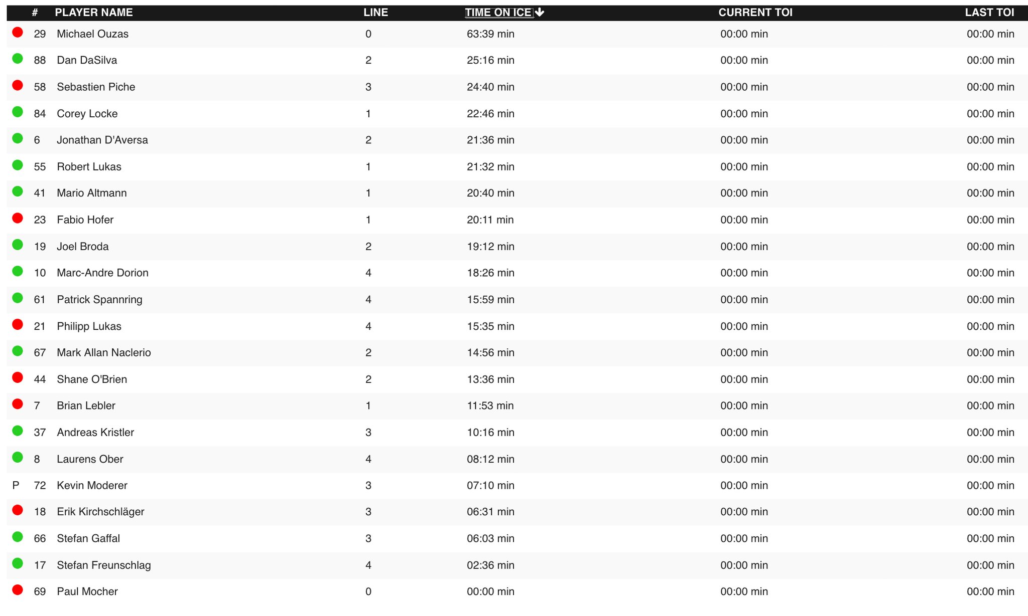 Locke war gestern gegen Ende und in OT gefühlt dauerhaft am Eis. Dadurch, dass anders als meistens unter Daum während dem Match die hinteren Linien auch relativ viel Eiszeit bekommen haben die Top - Spieler gegen Ende noch Luft. Sieht man auch ganz gut an den Eiszeiten der nominellen 4. Linie.