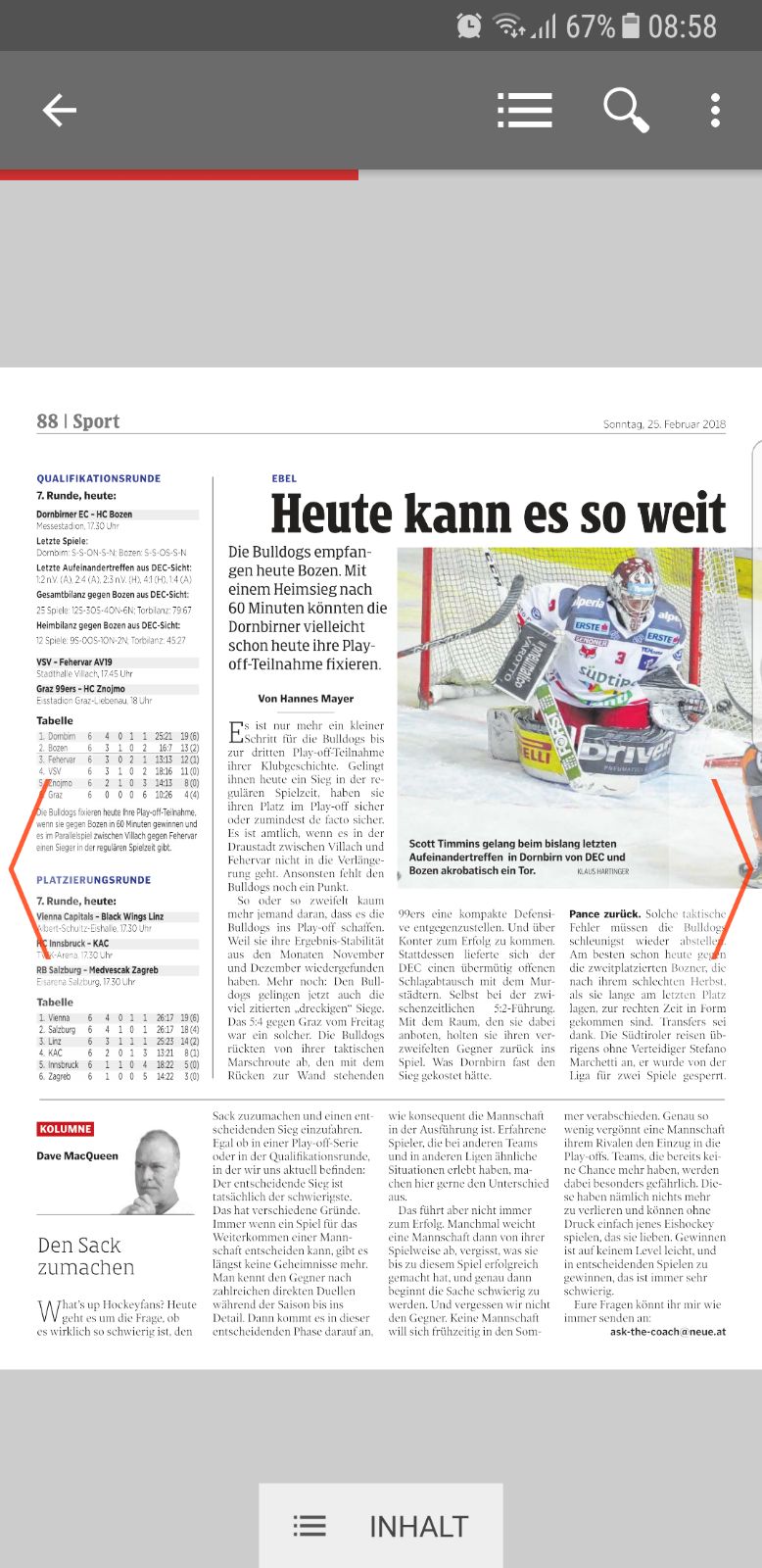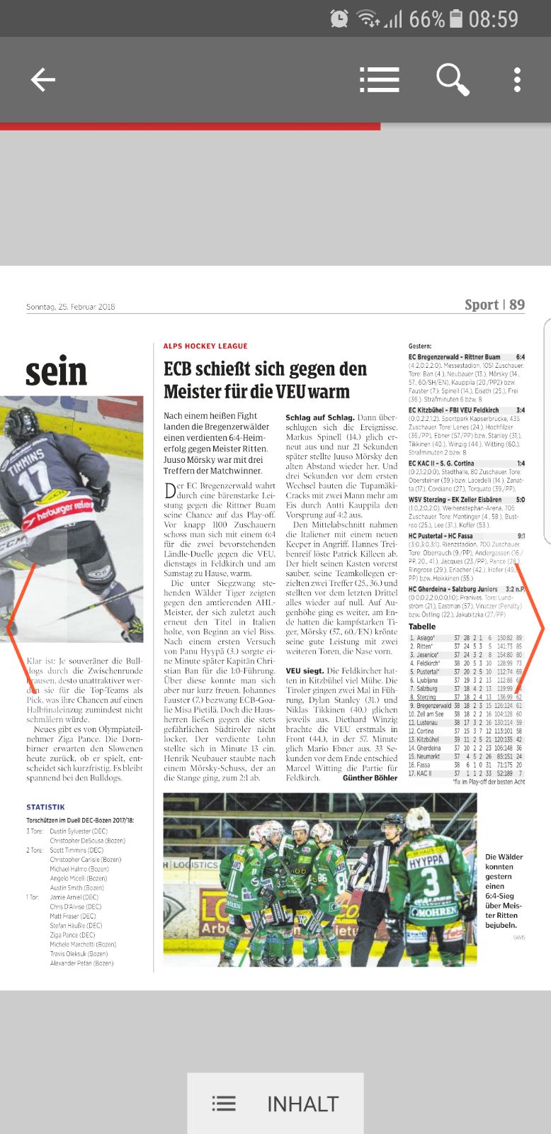 Laut VN wäre das Viertelfinale sicher wenn wir Bozen morgen nach 60 Minuten schlagen und beim Spiel VSV vs. FEH ebenfalls ein Sieger nach 60 Minuten feststeht![]()
