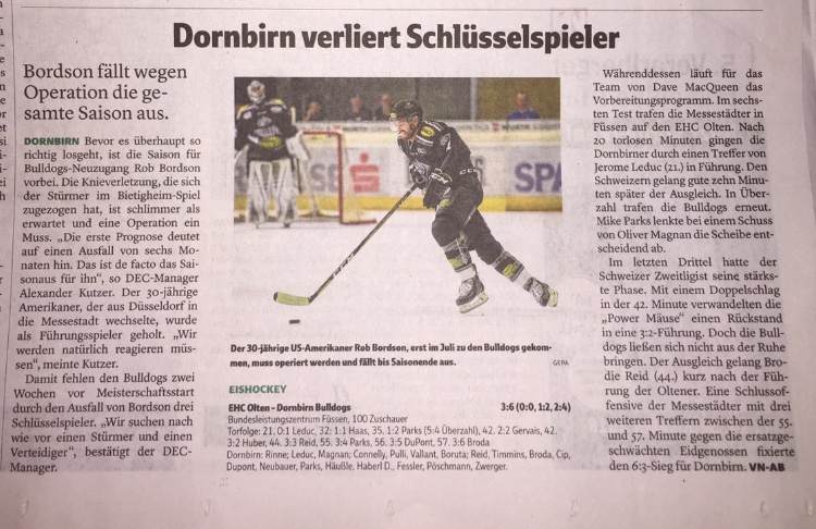 Bordson soll "für längere Zeit" ausfallen. Ob er ersetzt wird oder ob man bis zu Bordsons Rückkehr mit Häußle als 2C plant?:/