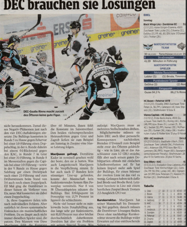 Letztes Jahr war es Caruso. Heuer ist es Rinne. Rinne hat seine stärken die wir alle kennen. Aber auch, wie jeder andere Torhüter hat er auch schwächen.