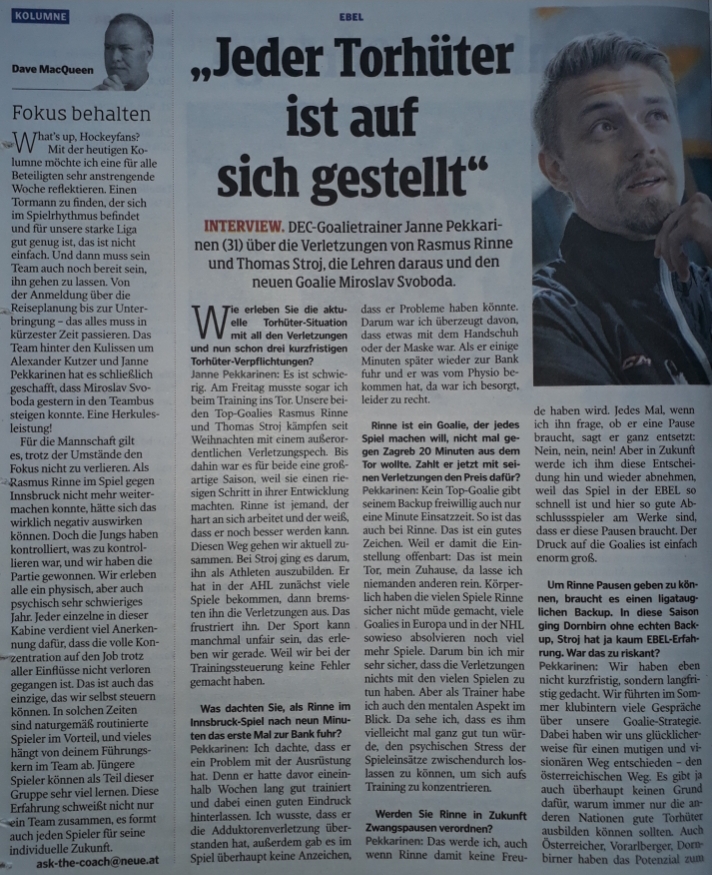 Wie kann man nur so wenig Ahnung bei soviel Meinung haben wie Ranger. Einen Höneckl ersetzten ist doch was anderes wie einen Rasmus Rinne? Der schwedische Tormann ist unter 20, weil er nur 2 Punkte hat wie Höneckel, sonst würden auch Graz einen besseren nehmen. Nur wer gibt jetzt einen Top Tormann weg? Du bist der erste der dann wieder Motzt wenn mann einen 3 Liga Tormann holt der noch nicht 1 Erwachsenen spiel gespielt hat! Du schreibst immer nur was der DEC falsch macht und die anderen gut machen. Ich bin auf jeden Fall froh das man beim Kauf der Stürmer gewartet hat, auch da hast du gejammert, sonst hätten wir keinen Trotter oder O Donnell, ich bin mir sicher sie holen nur einen wenn er annähernd Rinne ist sonst macht es eh keinen Sinn.
