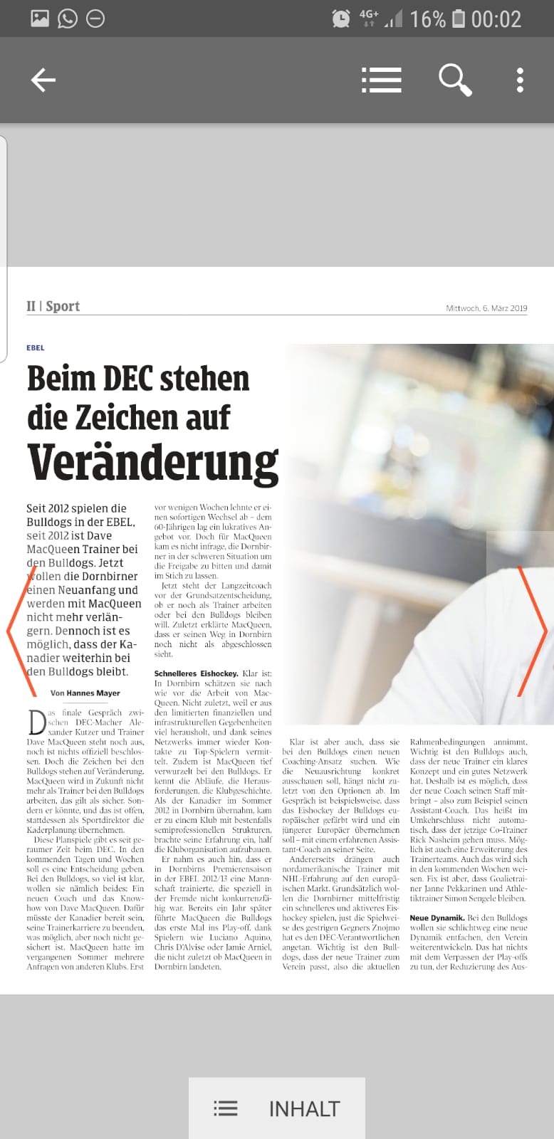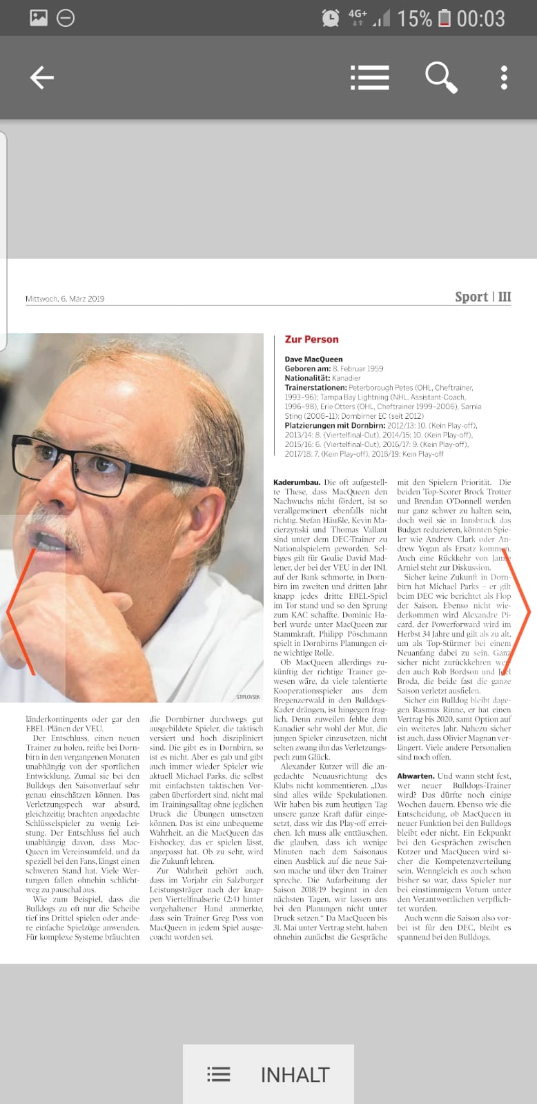 Laut der „Neuen“ soll MacQueen in Zukunft nicht mehr die Bulldogs betreuen, er könnte aber als Sportdirektor erhalten bleiben. Für Alexander Kutzer ist das aktuell alles noch kein Thema, er möchte einmal die Saison aufarbeiten. Auch die Spielerverträge stehen nun an erster Stelle. Trotter und O´Donnell möchte man natürlich halten, allerdings wird das wohl nicht leicht werden für die Vorarlberger. Und angeblich könnte in Innsbruck nach Ersatz Ausschau gehalten werden, Andrew Clark bzw. Andrew Yogan Thema sein. Laut der „Neuen“ nicht mehr mit dabei im Kader sind: Michael Parks, Alexandre Picard, Rob Bordson und Joel Broda. Rasmus Rinne hat Vertrag bis 2020 und auch Magnan wird wohl bleiben.