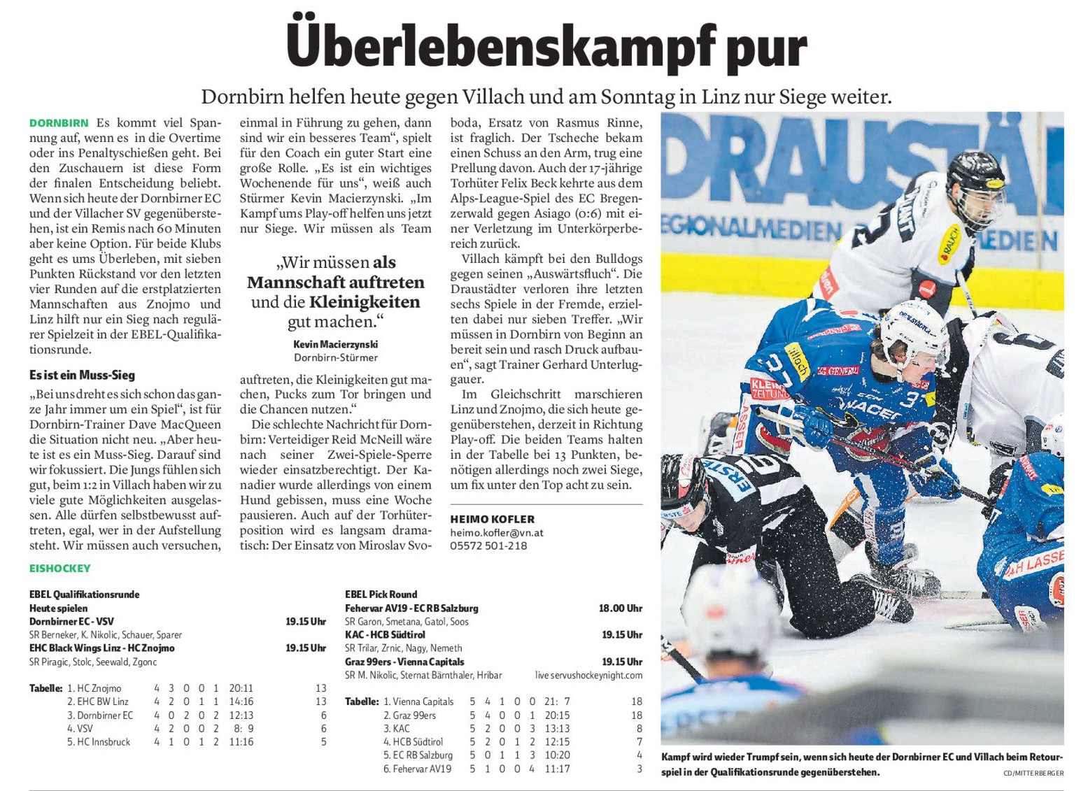 Wenn die Entscheidung bezüglich EBEL-Aufnahme der VEU aber erst im Mai fällt vermute ich, dass er demnächst nochmals für eine Saison in Dornbirn unterschreibt. Kevin sollte kommende Saison auf jeden Fall in der EBEL auflaufen.