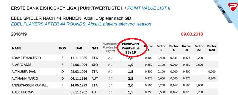 Nein, das sind schon die Punkte von heuer, also 18/19: