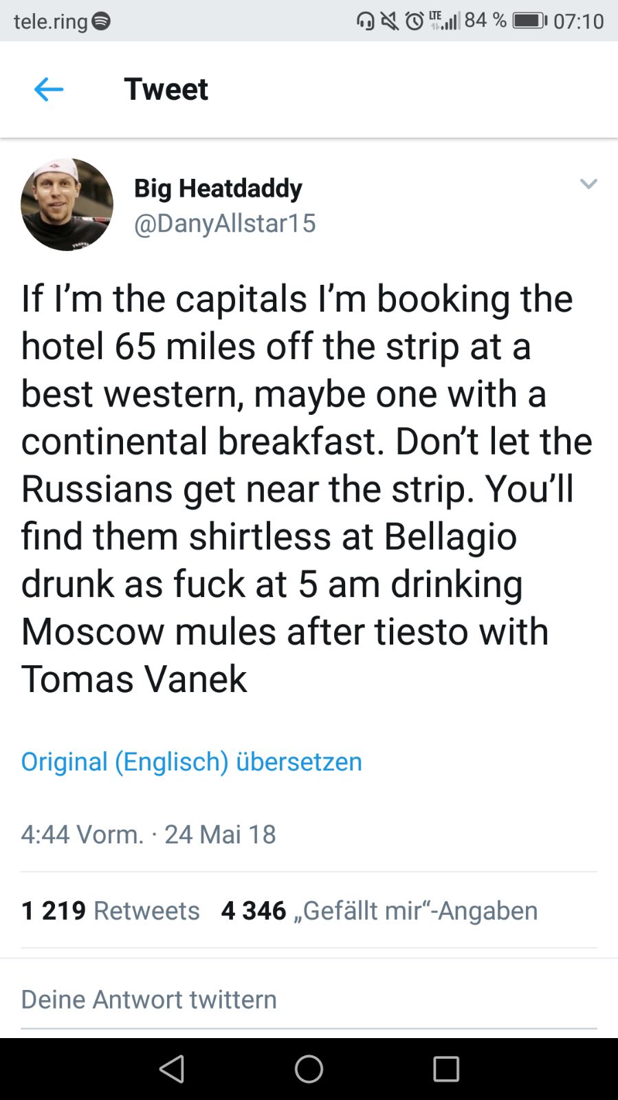 Vegas gegen Capitals; egal wer gewinnt ich freu mich.