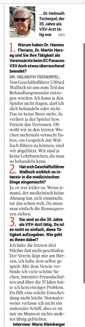 Dr.Tscherpel war wohl um die 20 Jahre oder mehr für den Verein da...aber: alt muss weg. Kenne auch Dr. Herzeg als Eishockey- und VSV Fan, wirklich schlimm wenn man solche Menschen für den Verein verliert.