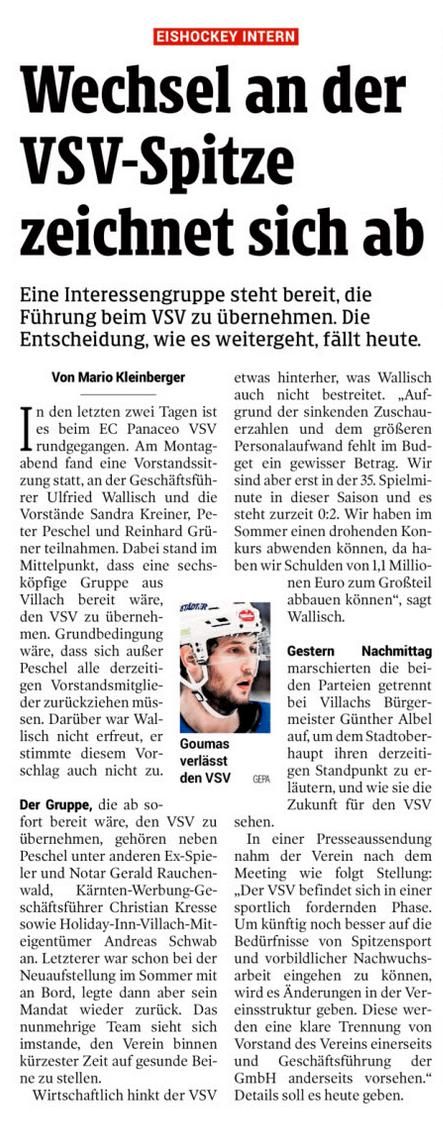 Es darf nicht um Personen die irgendwelche Posten besetzen gehen, sondern um Leute die den EC VSV wieder auf Schiene zu bringen. Wallisch war gut für die Ablöse, die Weiterführung des EC VSV stellt man sich dann doch etwas kompetenter vor.