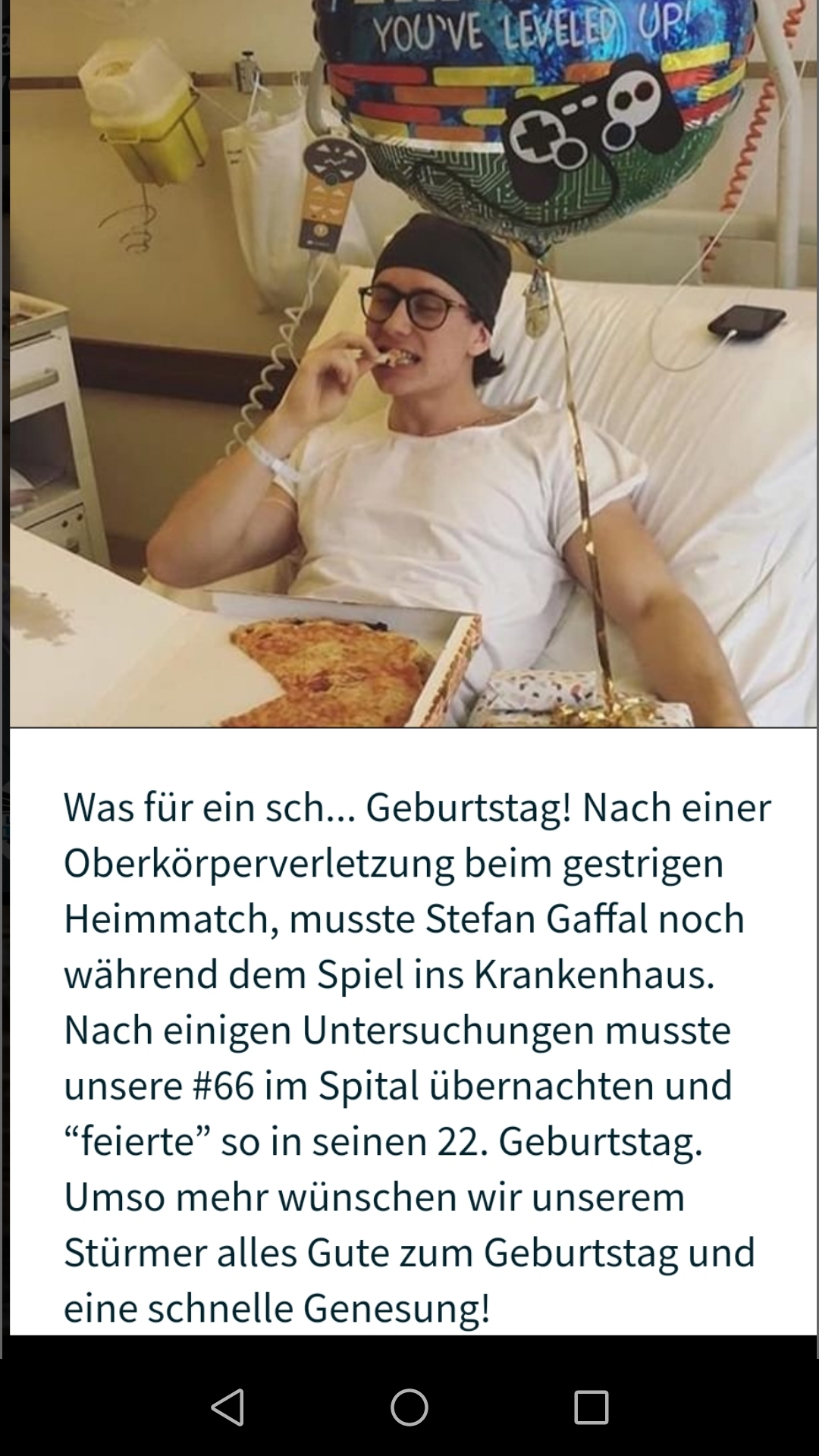 Bzw. In der Nacht hat mir meine Nichte ein Bild von Ihm im Krankenhaus auf Instagram gezeigt.