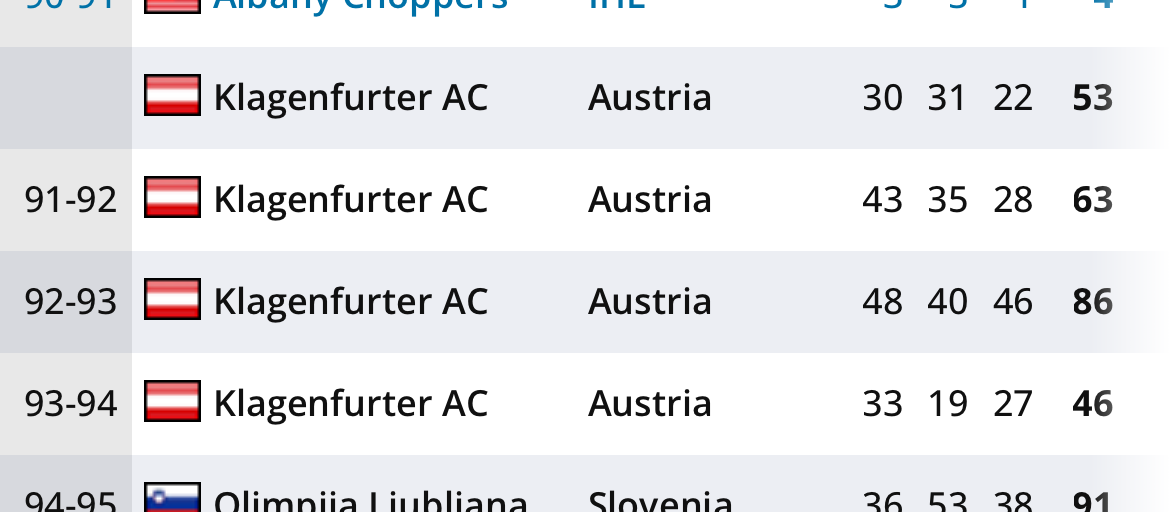 Weil gerade ein Artikel über Kraig Nienhuis in der kleinen Zeitung war. Die Statistiken seiner Jahre beim KAC muss man sich echt auf der Zunge zergehen lassen