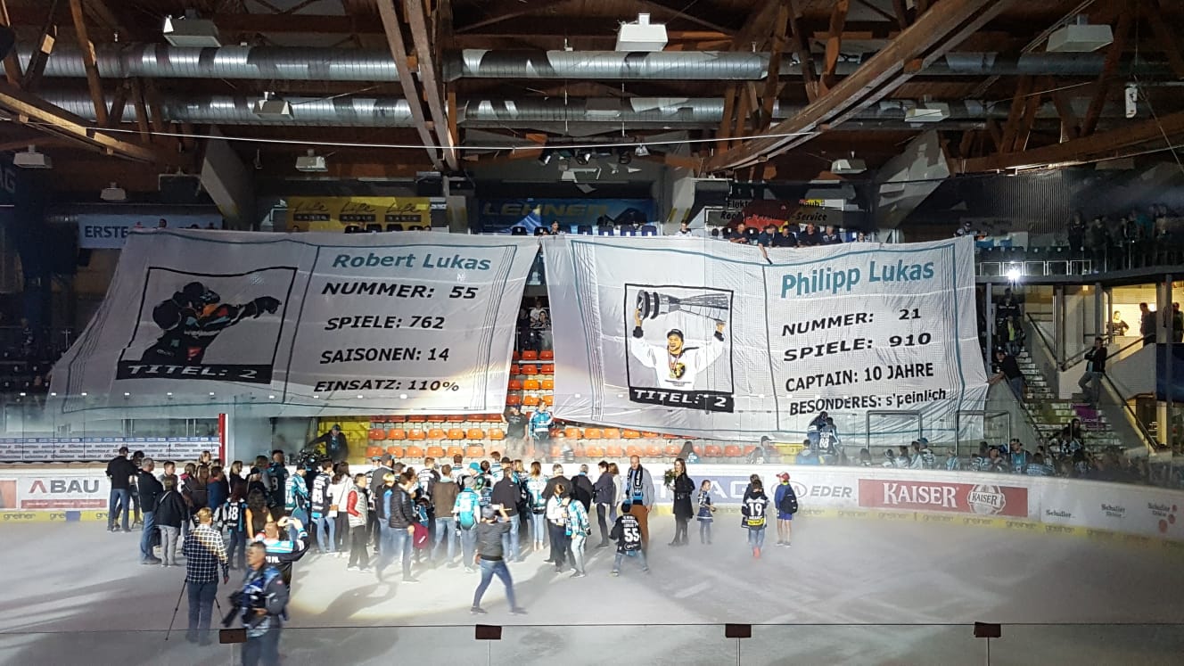 Aja, Respekt an den Wiener Support! Sehr nettes Transparent zu den Lukas Brothers! #wirsindalleeishockeyfans