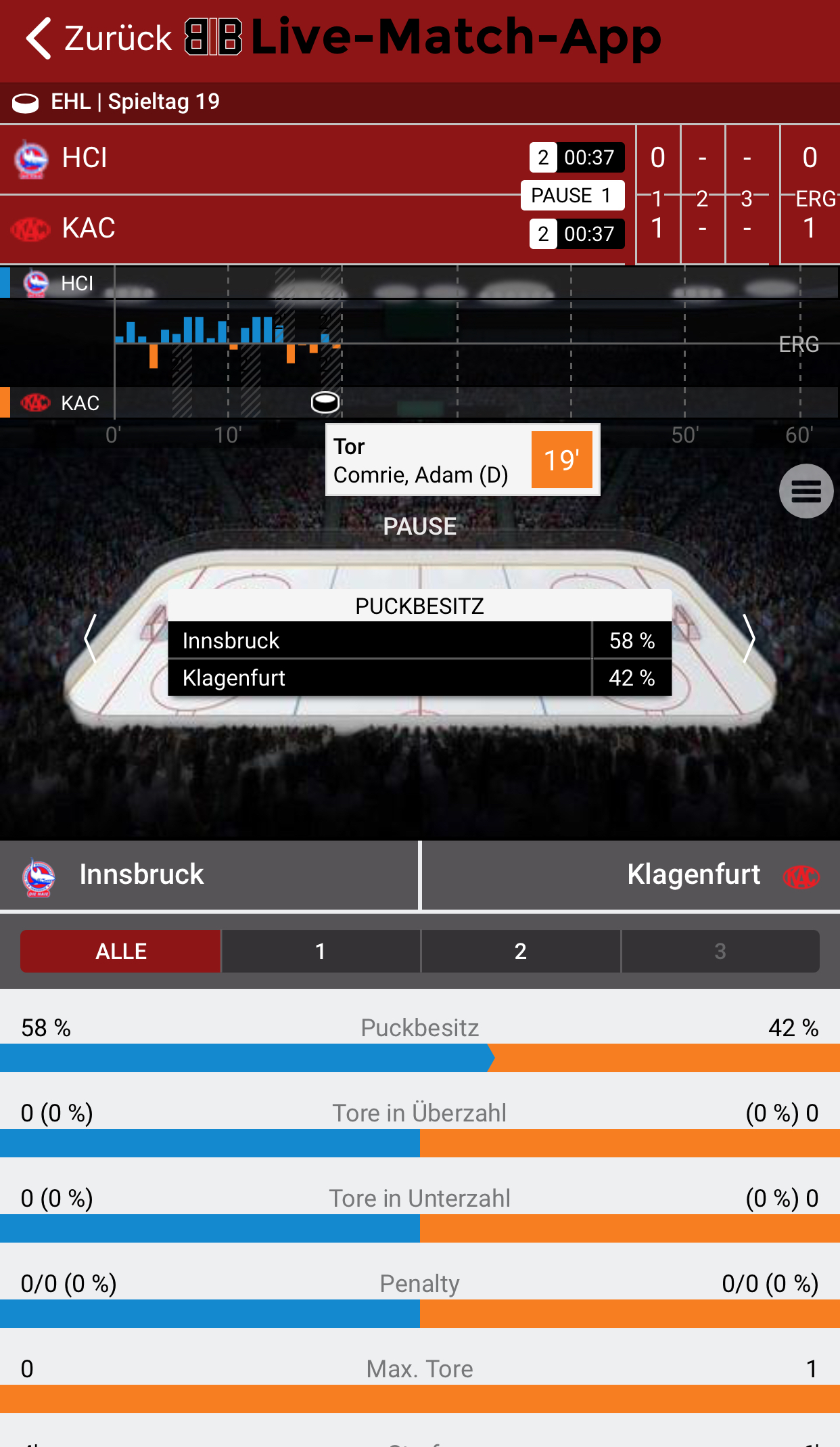 edit: Wenn man sich die shot-map anschaut und sieht, dass Innsbruck in den ersten 15 Minuten bereits zwei PPs hatte, bekommt man den Eindruck, dass die hungrig aus der Kabine gekommen sind und uns dezent um die Ohren fahren. Aber noch 0:0