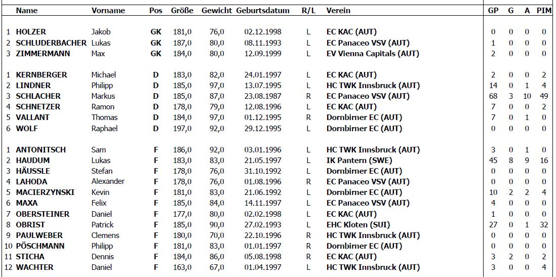 Hab mir zwei von drei Partien in Klagenfurt angesehen!!!! Und ich muss sagen das die Chemie im Team absolut stimmt und die Freude zum Team zukommen wider sehr groß ist! Was leider nicht immer so war( es hat Zeit gegeben wo Spieler nicht Mal zum WM Turnier kommen wollten)Und ich will garnicht auf einzelne Leistungen von Spielern eingehen ,aber man hat im laufe des Turniers immer besser die Handschrift vom System Bäder gesehen!!!!