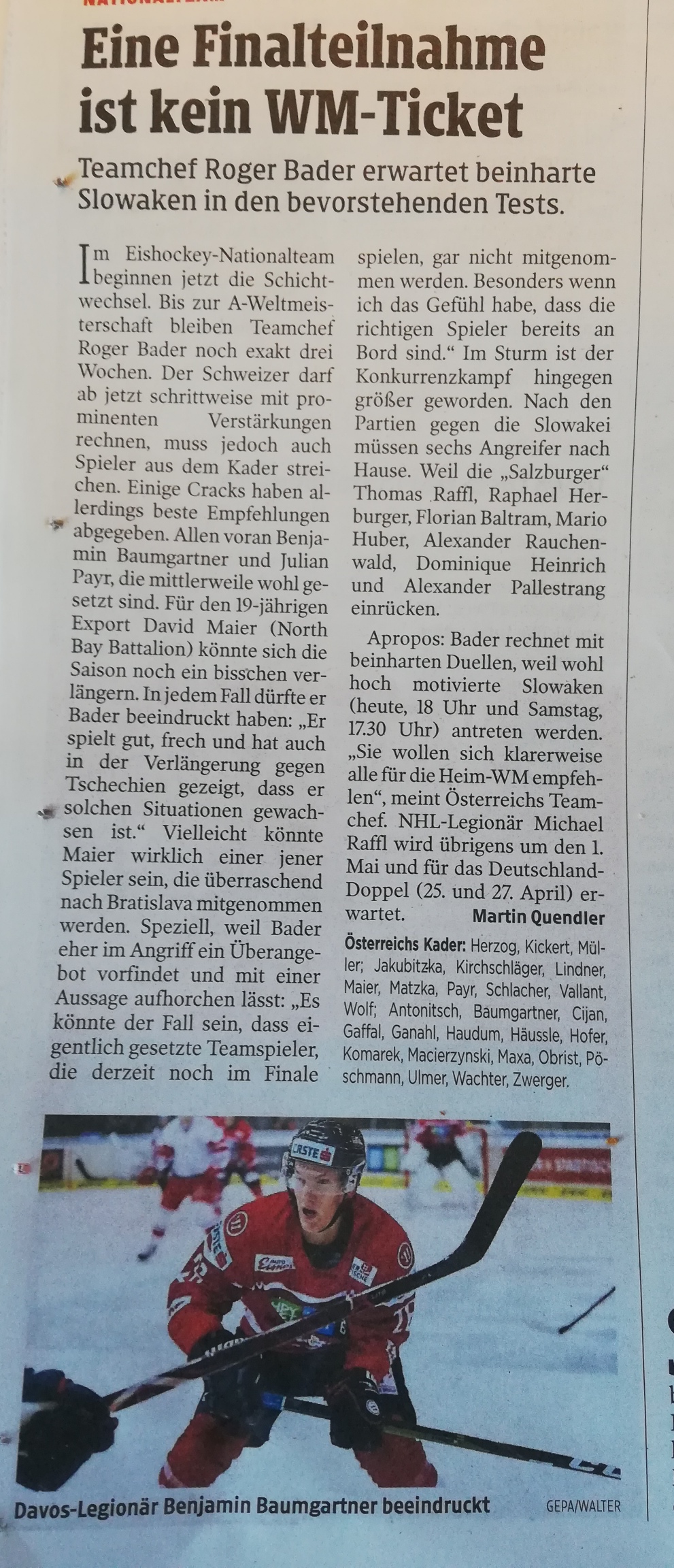 Also bei Maier bin ich nicht auf Bader´s Linie. Defensiv und körperlich ist er mir eher negativ aufgefallen gegen Tschechien. Aber für die Zukunft auf jeden Fall eine Bereicherung für Team Austria,