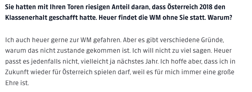 ...das ist die offizielle Version, ja. Und er hat es auch in einem Laola-Interview so bestätigt. Man hat aber vorher auch schon andere Versionen gelesen.