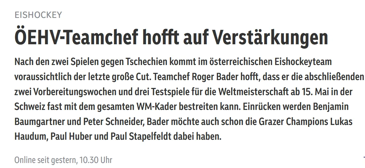 ...überrascht mich jetzt schon, dass man das beim ÖEHV gestern noch nicht wusste...