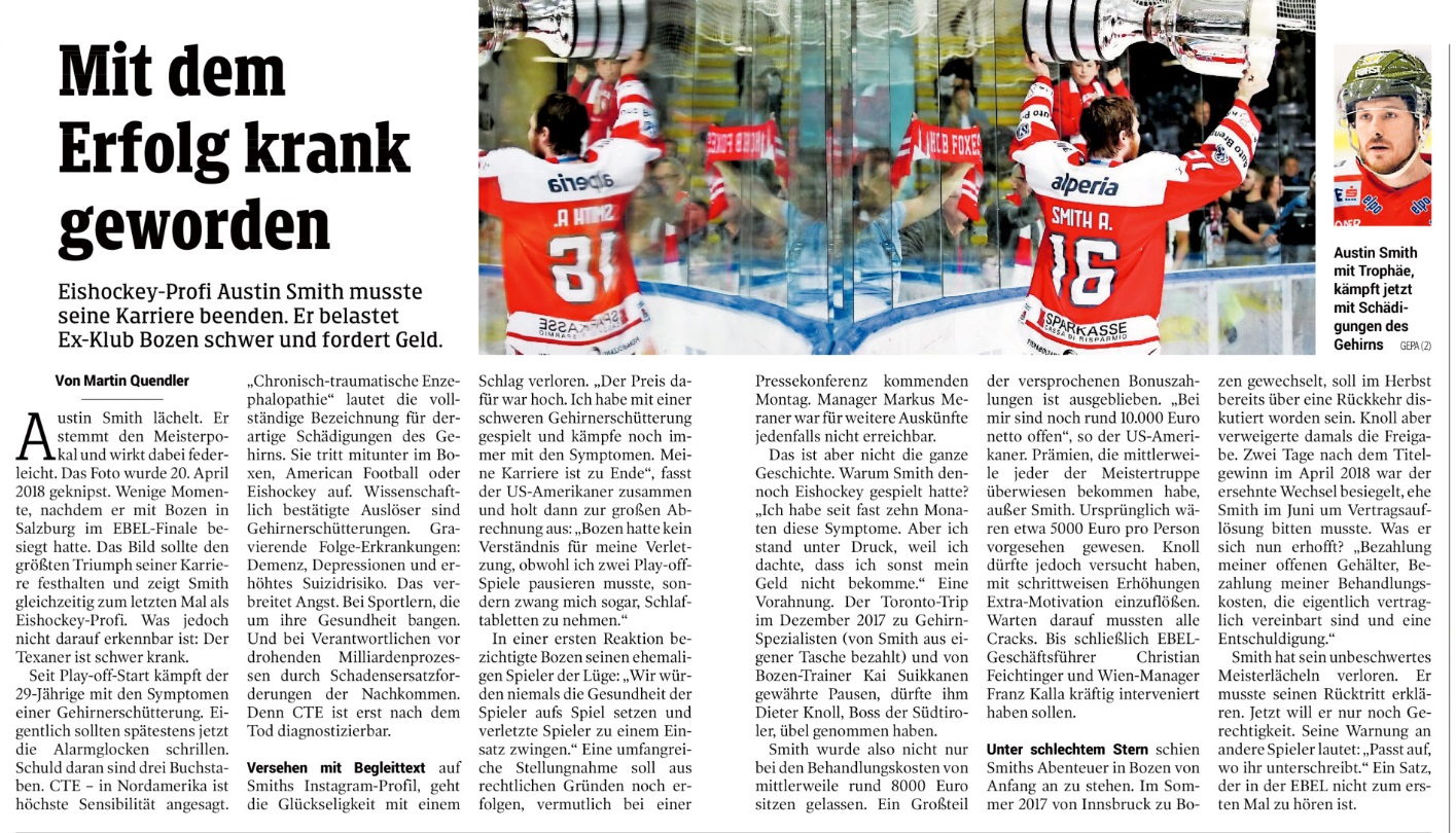 Hat jetzt zwar nichts mit ausstehenden Gehaltsforderungen zu tun, aber wenn es sich um CTE handelt, kann man nicht sagen "das hat er sich in Bozen geholt". CTE entwickelt sich über einen langen Zeitraum. Da ist Innsbruck dann ebenso "schuld" wie Ravensburg, Ässat und alle Stationen, wo der Smith bisher gespielt hat.