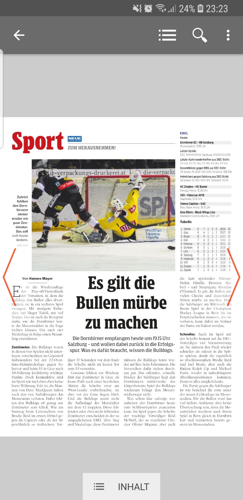 War erst am schluss deutlich. Salzburg aber am Schluss einfach besser und körperlich presenter wie Dornbirn. Wir konnten nicht wirklich was entwickeln. Mit schon wieder 3 Gegentore im 2 Drittel war es fast schon wieder gelaufen.