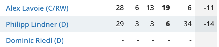 Erstens stimmt -6 NICHT. Und zweitens haben die wahren Superstars Yogan UND Clark -5. Jetzt ist Dir wahrscheinlich schon klar, dass Lindner KEIN NHL Verteidiger ist. Aber schon klar die Imports werden weniger kritisiert, als der Einheimische.