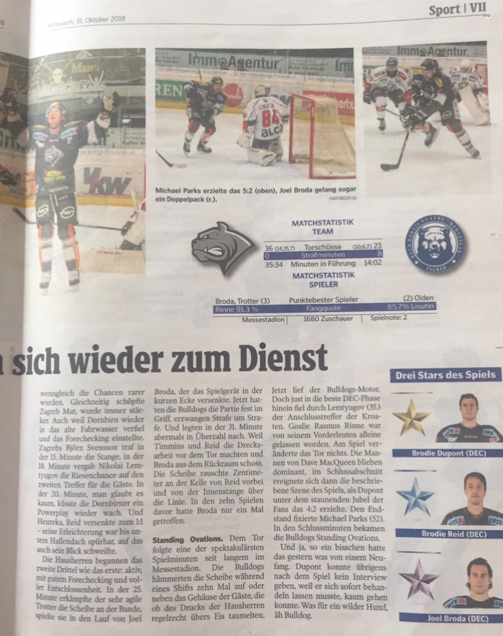 Trotter, O´Donnell und Cip, sind tolle Eishockeyspieler. Sie haben aber noch viel Luft nach oben. Nach der Länderspielpause, werden sie uns noch viel mehr Freude bereiten. Auch Pulli und McNeill und Vallant, haben noch lange nicht ihre beste Form erreicht. Daher können wir uns auf noch viele tolle Spiel freuen.