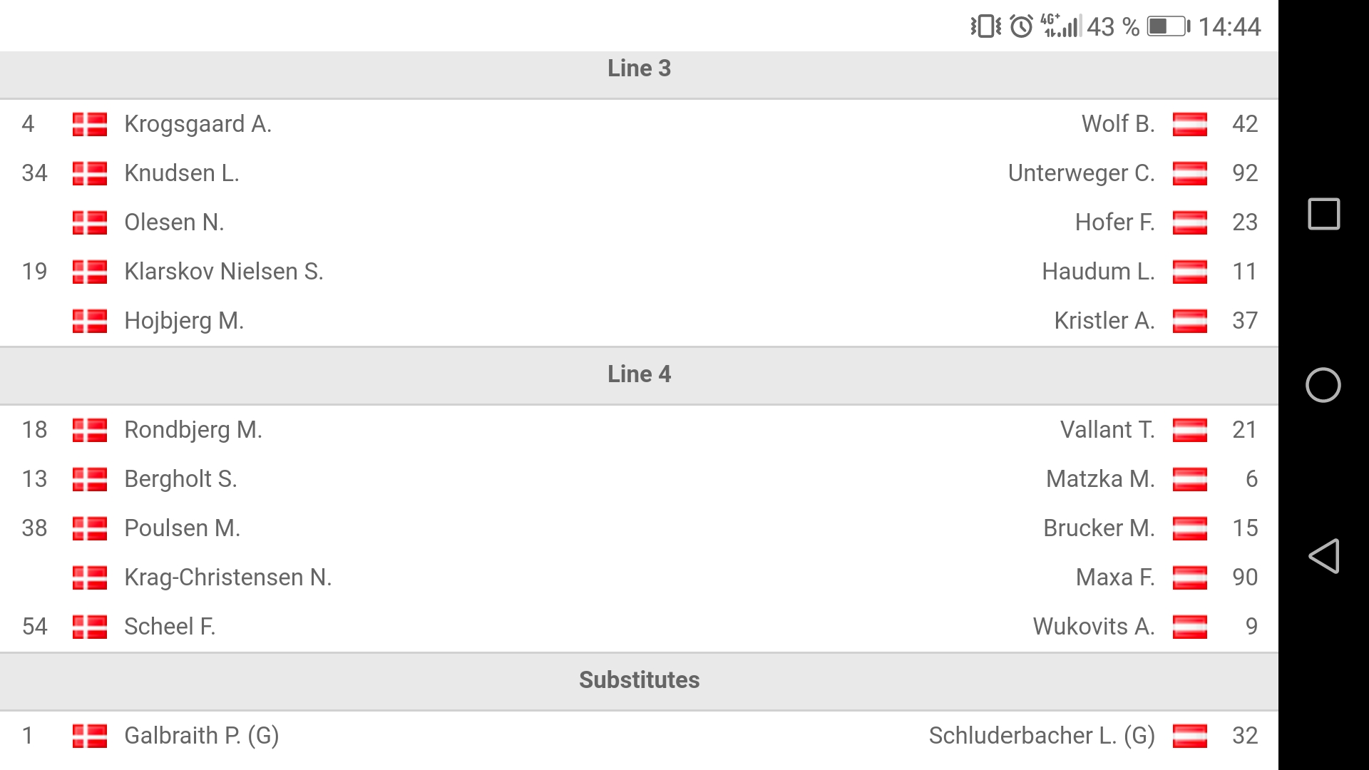 Das Line up vom heutigen Spiel gegen Dänemark