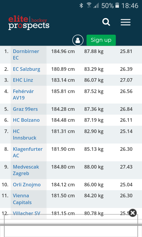 Interessant wären Top 9 Forward's Height und Weight und Top 6 Defender Height und Weight, und selbst dann kommt's immer noch auf die individualtät einzelner Akteure an. Ein Halmo ist nicht unbedingt groß oder schwer, der hat aber eine gewaltige Präsenz am Eis. Ein Altmann hat dafür 195cm und 100kg und spielt so gut wie nie auf den Körper. Just my opinion