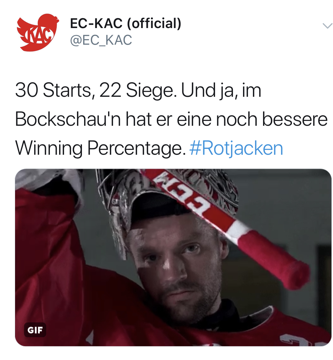 Ein KAC-Tweet zu Lars Haugen, der seine Statistik (natürlich TOP) darstellt, und hoffen lässt... Könnte jetzt einfach nur ein verdientes Lob für die tollen Leistungen sein, aber vielleicht auch eine Andeutung zur Vertragsverlängerung? Zu hoffen wärs.