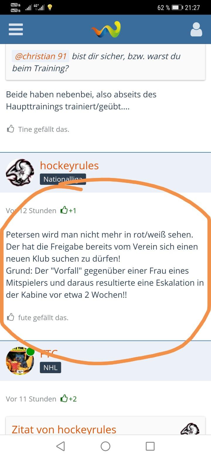 5, Wieso würd sich ein Verein interne und externe Unruhe antun? Vorallem wenn man bedenkt das Petersen heuer nicht immer die beste Leistung aufs Eis bringt