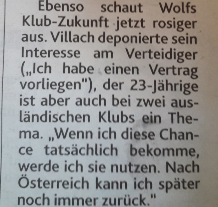 Lt. heutiger Krone hat Raphael Wolf ein Angebot von Villach, tendiert aber in Ausland.