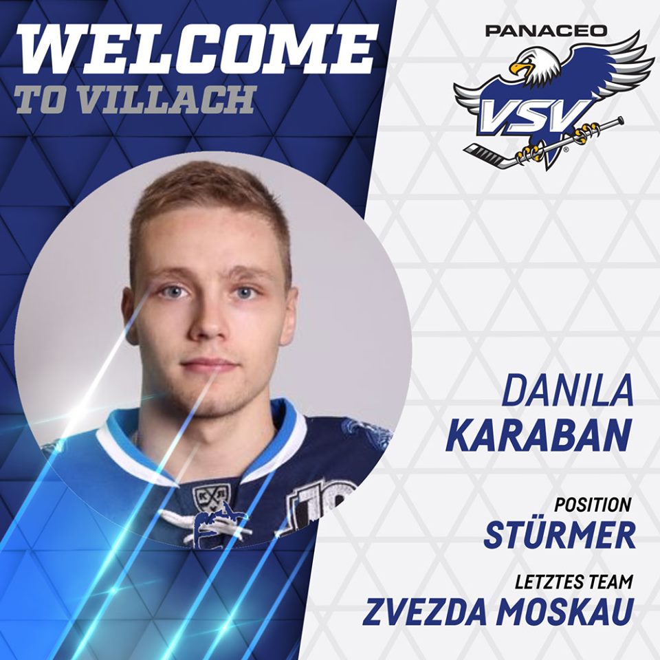 Der EC Panaceo VSV verpflichtete den weißrussischen Stürmer Danila Karaban, der in der letzten Saison für Zvezda Moskau tätig war. Karaban kann trotz seiner erst 22 Jahre bereits auf beeindruckende Referenzen verweisen. So stehen unter anderem 45 Spiele in der KHL mit Dinamo Minsk sowie 27 Länderspiele für Weißrussland in seinem Lebenslauf. Karaban ist Rechtsschütze und sowohl als Center wie auch als Flügelstürmer einsetzbar. Er gilt als ausgezeichneter Eisläufer russischer Schule.