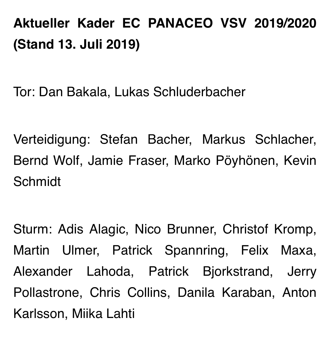 Transfergeflüster EC Panaceo VSV 2019/2020