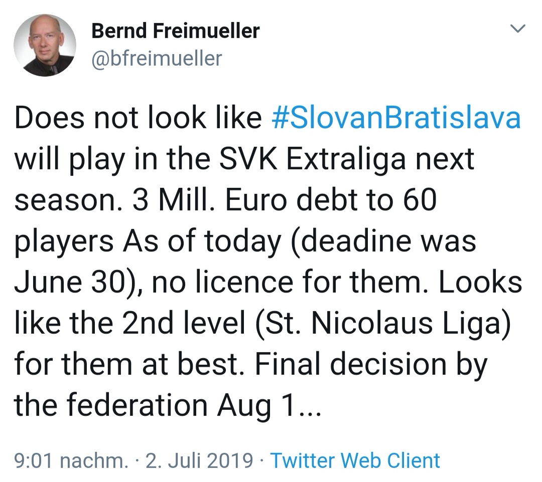 Vermutlich eine gute Entscheidung das Slovan nicht in der EBEL spielt!