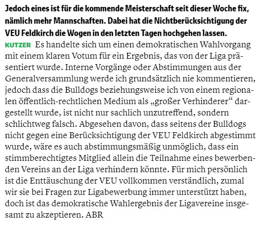 also ich glaub die internationalen Teams haben das Feldkircher Team nicht verhindert, sondern nur eine passable Ausrede (andere Option?) geboten.