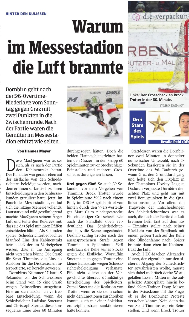 Achsooo, na dann sollten wir alle Spiele zugunsten der Dornbirner strafverifizieren und dem DEC gleich den Meisterpokal überreichen, nur so machts für mich überhaupt noch Sinn.