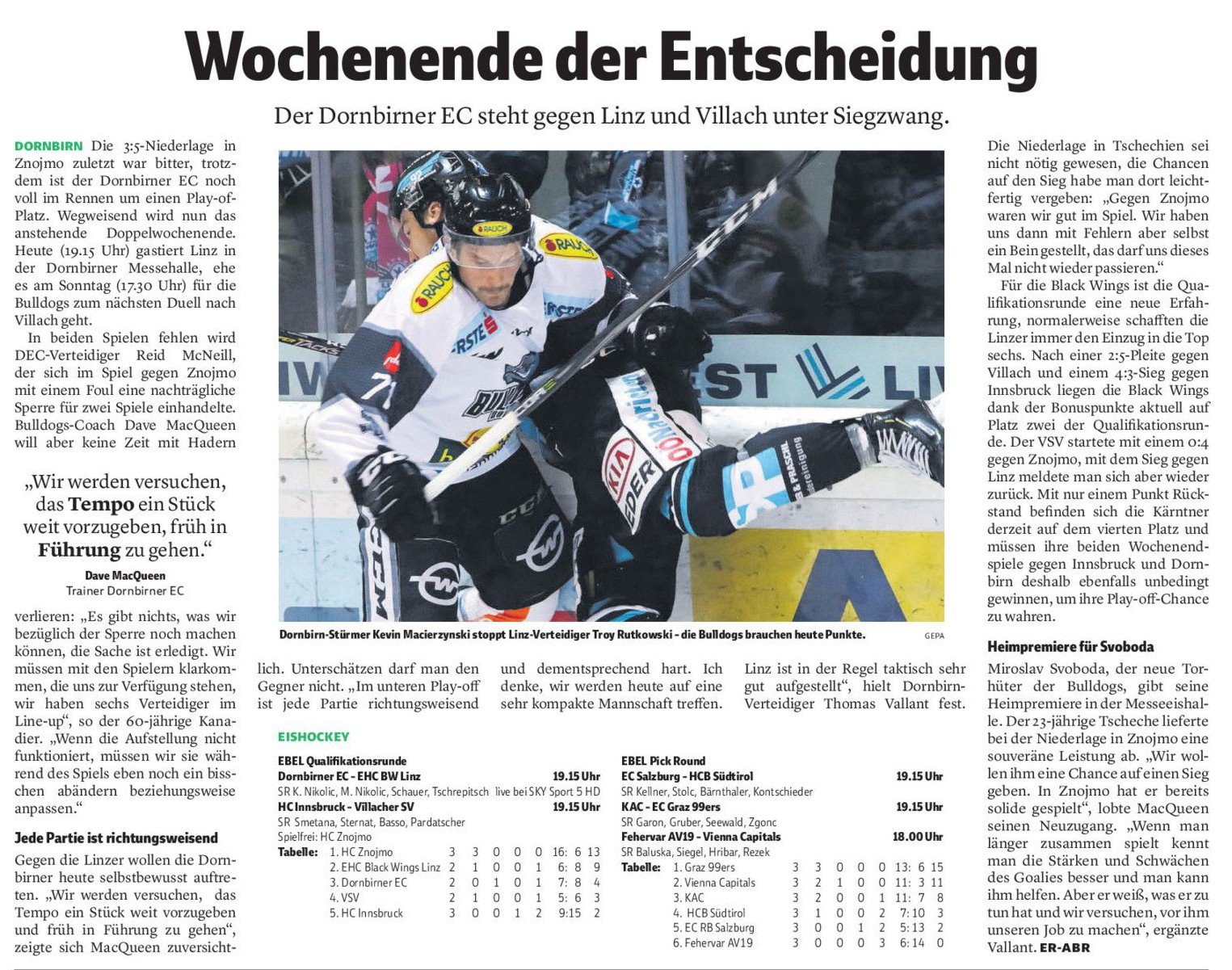 4. Runde PO Qualifiers: Dornbirner EC 'Die Bulldogs' - EHC Liwest Black Wings Linz