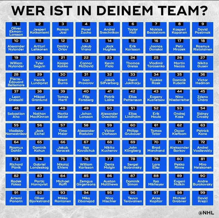Konstant auch Pittsburgh, Sharks, Tampa, Nashville würde ich auch noch sehen!