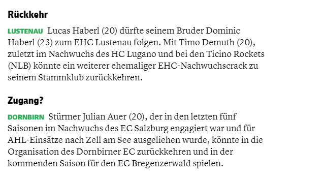 Bei allem Respekt, aber ich sehe Dornbirn nicht in der Position einen Vallant ziehen zu lassen, auch wenn er keine gute Saison hatte. Immerhin gilt es ja die Legionäre zu reduzieren und dann soll der Abgang eines relativ jungen Spieler mit über 200 EBEL - Spielen zu verkraften sein?