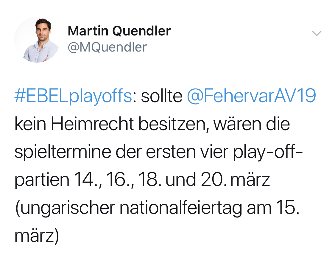 Eines ist klar. Fehervar scheisst auf Rang vier, kommen heute ohne Carruth, Caruso, Harty, Tikkanen, Luttinen, Koskiranta, Sofron und HARI nach Klagenfurt. 😲 Sowas müssen wir auch ohne Haugen, Gartner und Topscorer Liivik gewinnen!