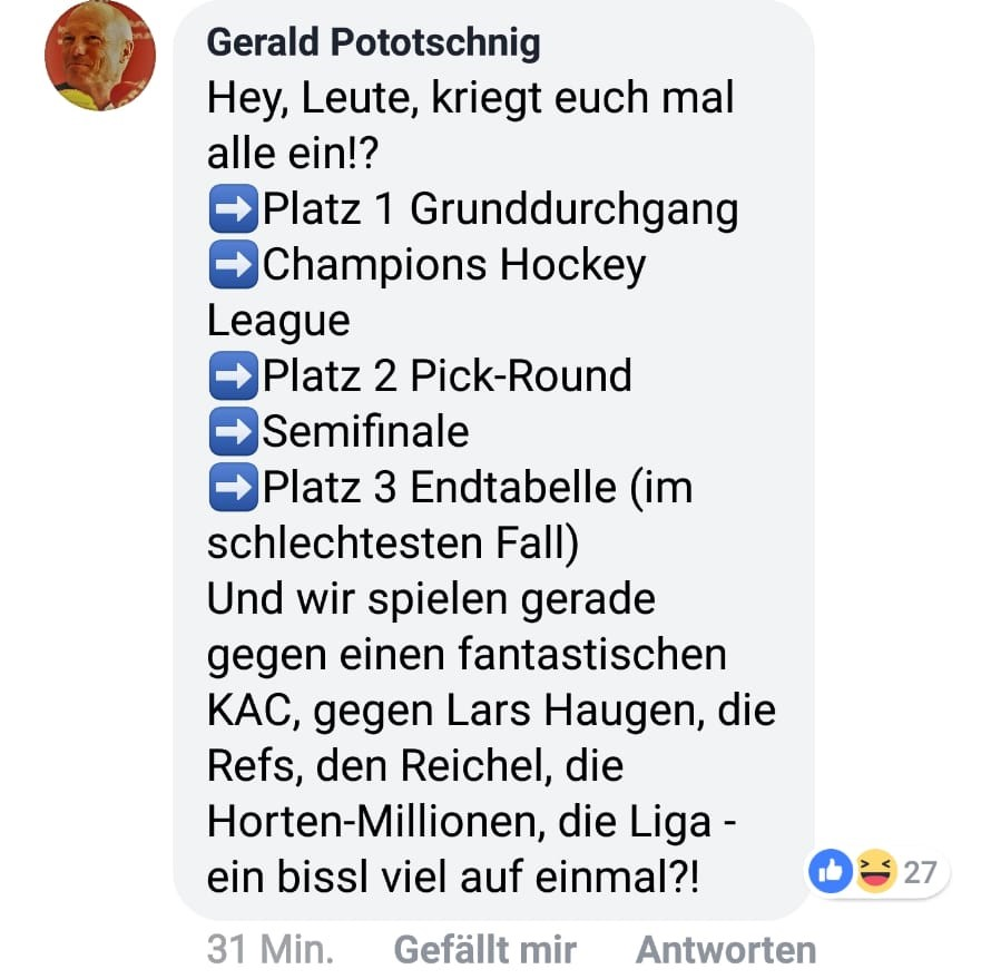 Grats nach Kärnten, aber ihr habt den Sieg viel mehr gewollt, das war zu sehen und über das gesamte Spiel gesehen hochverdienter Sieg des KAC.