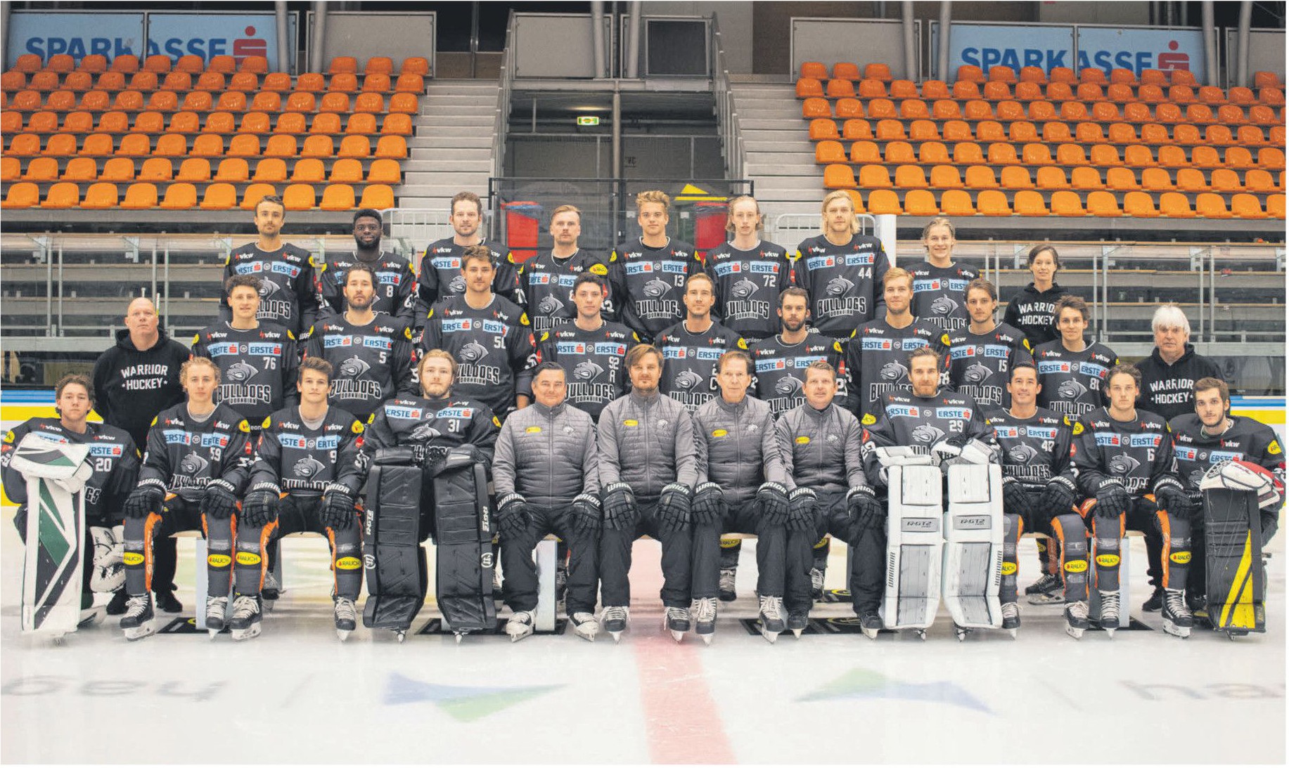 Die neuen Dressen wurden veröffentlicht (hoffe das Video ist auch ohne Twitter Account zu sehen). Das Bild stammt von der EBEL-Facebook Seite. Taugt mir, dass weiterhin das Vereinsolgo und nicht das eines Sponsors auf der Vorderseite zu sehen ist