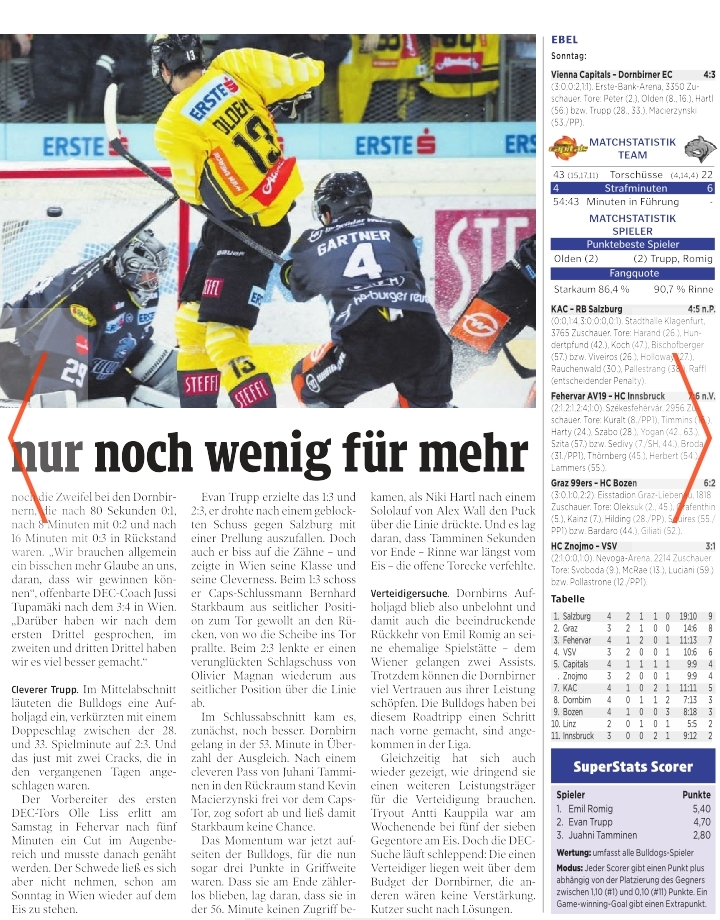 Mace hat es gesagt. Wir müssen mehr fighten / die Checks zu Ende fahren und die Dirty Goals machen.. Vorrallem müssen wir dort hin gehen wo es wehtut. Gegen Salzburg ist es aufgefallen das niemand vor dem Tor steht und für Unruhe sorgt bzw. die Abpraller verwerten kann! Die letzen Jahre war hier Mink der einzige der gelauert hat :oldie: