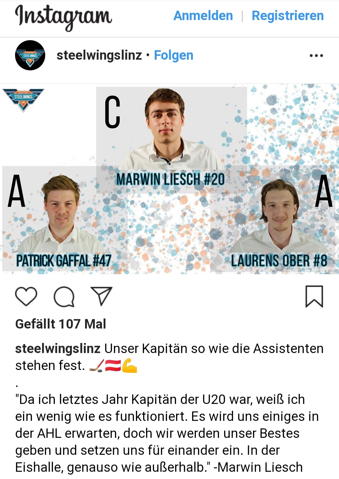 Auch die Steel Wings präsentieren nun ihren Captain und die Assistant's.