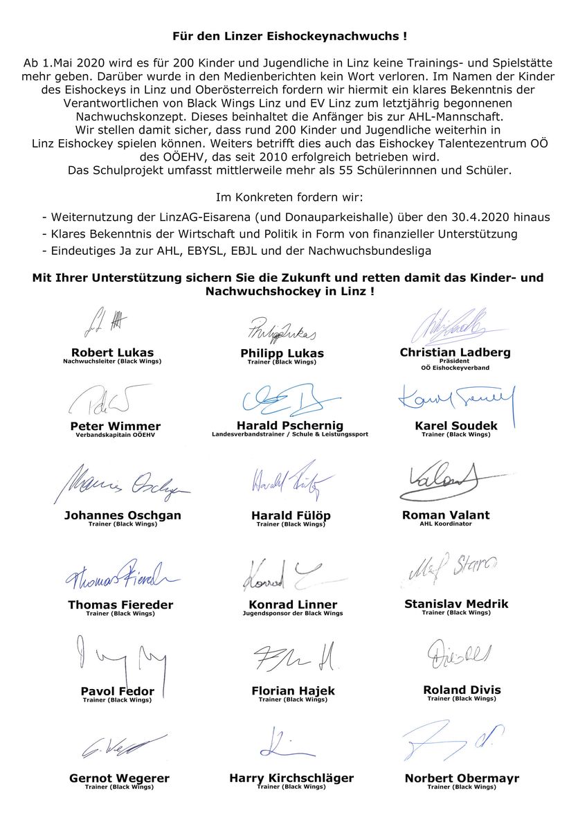 Ich war der Erste, der letzte Woche euren Hilferuf erhalten hat. Daher gab es am Samstag, 18.04.2020, einen Termin, bei dem ich euch über die Ungerechtigkeiten informiert habe. Der Zorn der Unterstützer des EV Linz und deren Abneigung zum Nachwuchs sollte uns treffen und hat euch alle Trainingsmöglichkeiten genommen. Der EV Linz und die LINZ AG haben nicht darüber nachgedacht, dass ihr ebenfalls damit schwer getroffen werdet. Ich habe euch auch versprochen, dass ich juristisch gegen diese Ungerechtigkeit kämpfen werde. Wir werden bald wieder in der Halle trainieren dürfen.