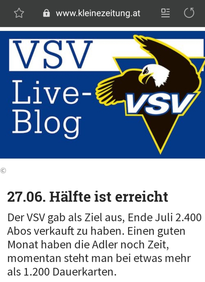 Laut Online Blog der kleinen Zeitung ist das Ziel für das Erreichen der 2400 plötzlich Ende Juli. Also ich hatte immer Ende Juni gelesen in den Werbeeinschaltungen. Mir solls recht sein, wenn sich ein Buchstabe ändert.