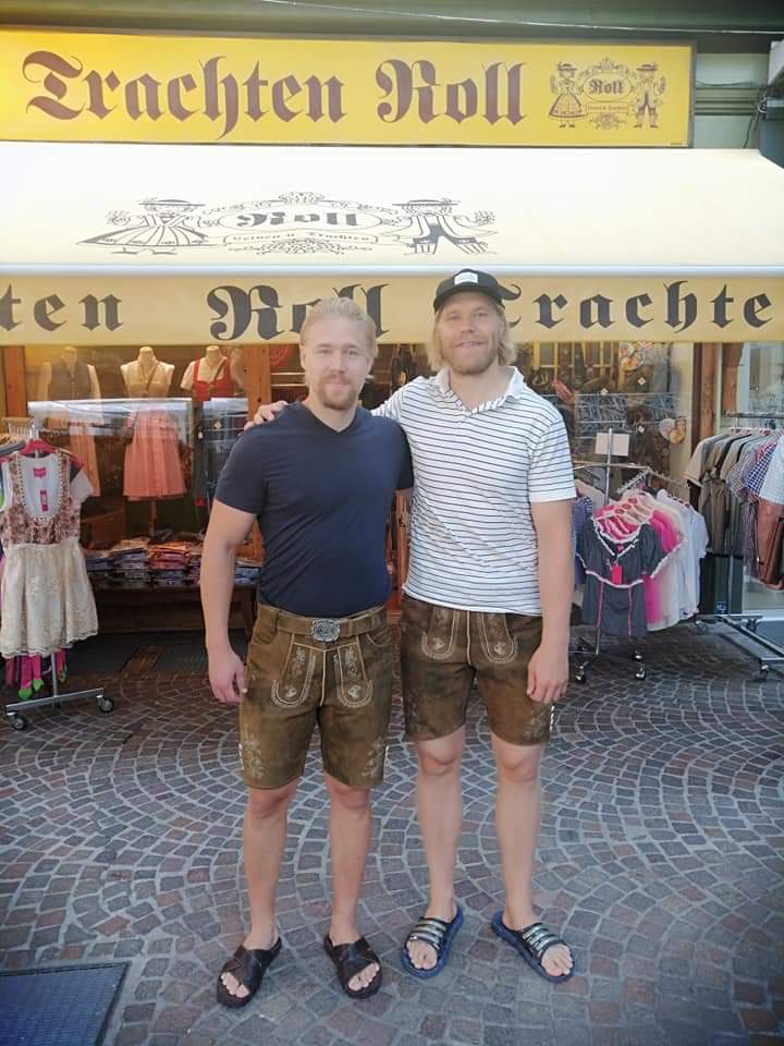 Unsere Finnen Pöyhönen und Lahti probieren auch ihr Kirchtagsoutfit an.