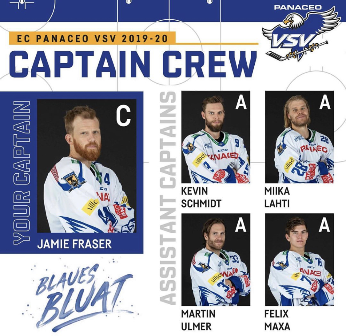 Lt. KRONE heute hat Aho nach Gesprächen mit allen Spielern, Fraser zum Captain ernannt. Die A's sind Ulmer, Maxa, K. Schmidt und Lahti.